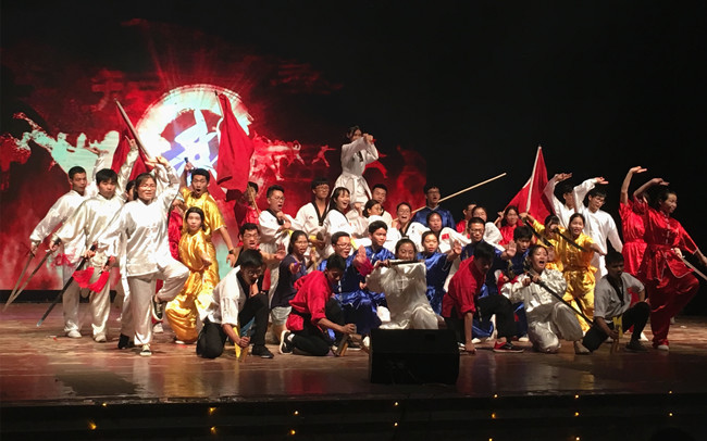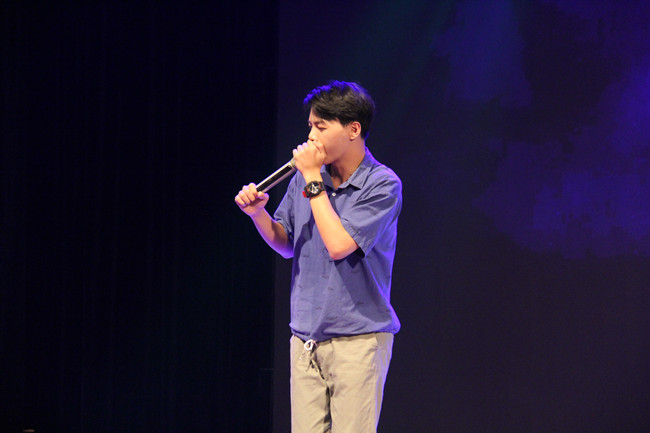 -ONE街球协会带来的精彩街球表演揭开晚会第一篇章——“相遇”,朝气蓬勃、活力四射的舞步,表演者与篮球之间的和谐互动,赢得观众阵阵掌声。随后,一首扣人心弦的《大鱼》引起了观众的共鸣,将所有人带入回忆之中,微信互动墙上滚动着“时光易逝,珍惜眼前人”的感慨。闽台动物病原生物重点实验室师生共同演绎《同一首歌》,表达了对于毕业生依依不舍的留念。大学生艺术团B-BOX队带来的《Peppa》口技表演将晚会推入了第一个高潮。