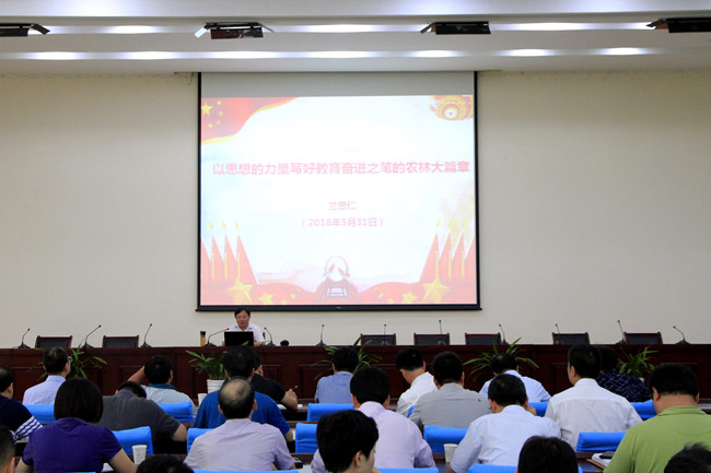5月31日下午,校长兰思仁以“以思想的力量写好教育奋进之笔的农林大篇章”为题开讲学习贯彻党的十九大精神专题党课。