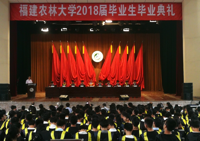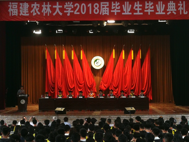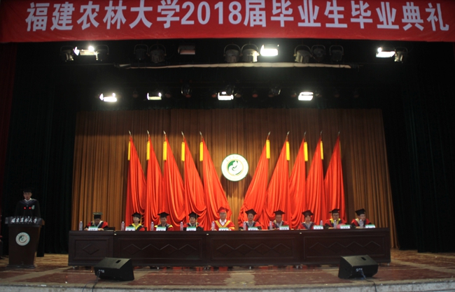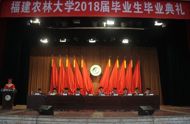刘金福、林玉蕊分别宣读了学院2018届研究生毕业生和2018届本科毕业生并授予学位证书人员名单,学院学位分委会成员为获得学士学位的每一位毕业生颁发学位证书并拨苏正冠。