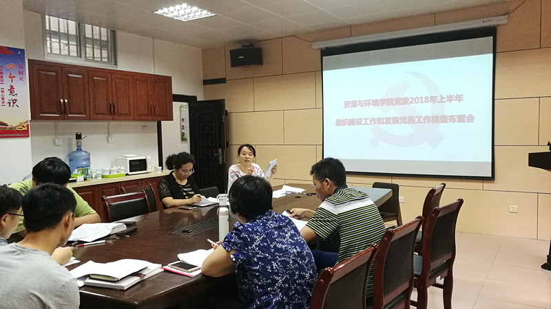 6月5日,资源与环境学院党委在博学楼210党员活动室召开2018年上半年组织建设工作和发展党员工作检查布置会。会议由学院党委副书记(主持工作)陈月霄主持,全体党支部书记、支委员参会。