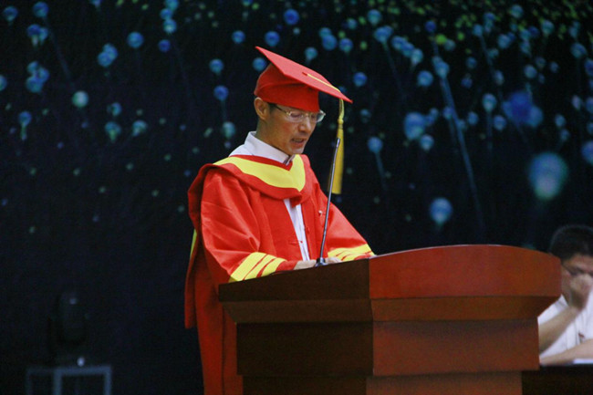 安溪茶学院院长、博士生导师林金科致辞,他回忆了四年来与同学们相伴的情景,并向毕业生提出四点希望:一要目标与努力相统一;二要情商与智商相统一;三要坚持与放弃相统一;四要远大理想与不懈追求相统一。