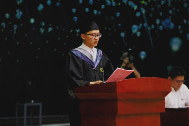 毕业生代表陈吉斌、在校生代表姚丽珊发言,共同表达了对毕业生的美好祝愿和对母校的感激之情。教师代表陈凌文勉励毕业生要不忘母校的拓荒精神与争先品德。