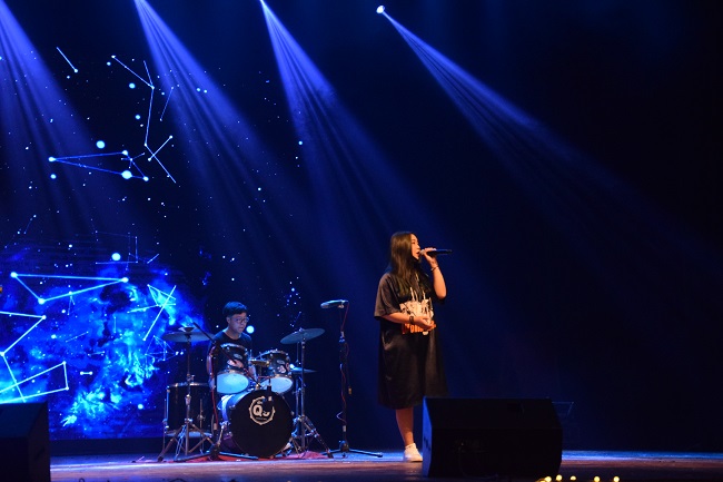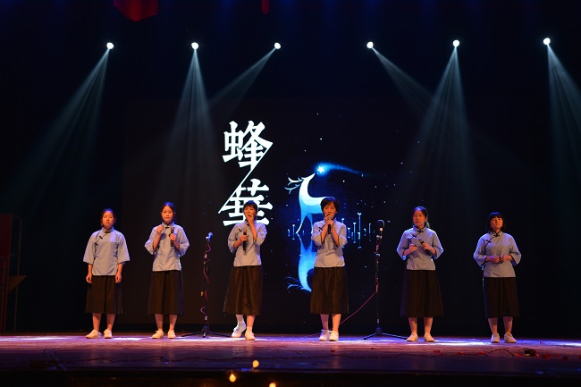 晚会的第一篇章“放蕊,创即新生”在唯美的《Viva la Vida》器乐演奏中拉开序幕。由院舞蹈队带来的舞蹈《Drops+Good Time》韵律十足、活力四射,赢得观众阵阵掌声。话剧《一切都好》将每一个人的校园成长经历搬上舞台,让毕业生们重新回味了大学生活的酸甜苦辣,弹幕墙上也是频频滚动着“韶华易逝,珍惜青春”的感慨。解彦玲和梁孟达同学合唱的《男孩》与郭睿老师演唱的《小镇姑娘》更是将晚会的第二篇章“共舞,勤是品格”推向一个又一个的高潮。一曲唱毕,董博龙同学的《噗哧脱口秀》与1418乐队的深情演绎让在场观众沉醉不已,一扫离别之愁。第三篇章“蜜恋,耕耘为本”用吴德峰老师带来的京剧《野猪林》表现了老师们的多才多艺;《武术表演》表现了当代大学生的青春活力;校合唱团的《City Of Stars》展现出同学们的独特魅力。晚会的第四篇章“归巢,蜂音不辍”以礼模走秀、歌曲串烧、树叶吹奏等多种形式为在场观众带来视听盛宴,彰显了大学生的青春活力。