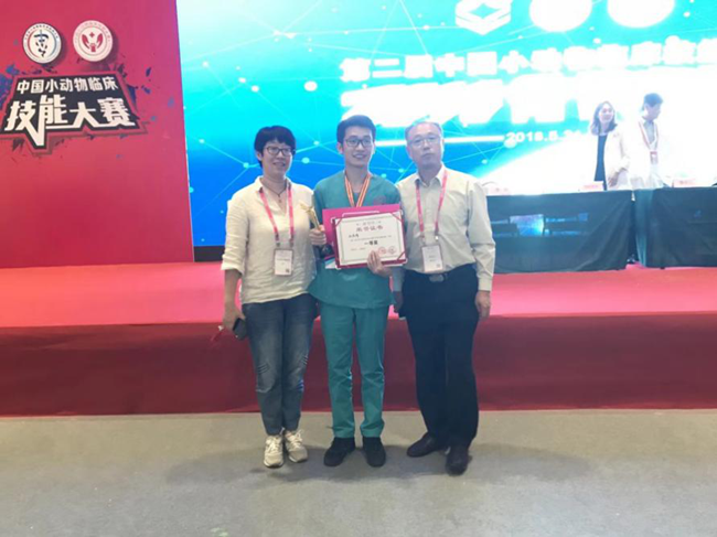 5月24日,中国现代农业职业教育集团主办第二届中国小动物临床技能大赛2018骨科专赛决赛在云南昆明举行。国内近40多所院校组成的代表队参加了本次比赛。比赛分为理论知识抢答和骨折模型内固定手术两项。我校动物科学学院副院长带队参赛,经激烈角逐,学院2014级动物医学专业的林强锋同学在44名参赛选手中脱颖而出,获得了比赛一等奖,指导老师胡崇伟和李静老师分别获得优秀指导老师奖。