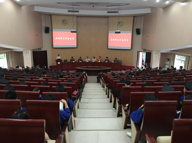 6月7日下午,动物科学学院在博学报告厅举办2018届毕业生毕业典礼。学院党委书记池有忠、院长陈吉龙、党委副书记戴意生、常务副院长黄小红、副院长黄志坚出席典礼,全院教职工、2018届全体毕业生及部分学生家长参加典礼。典礼由戴意生主持。