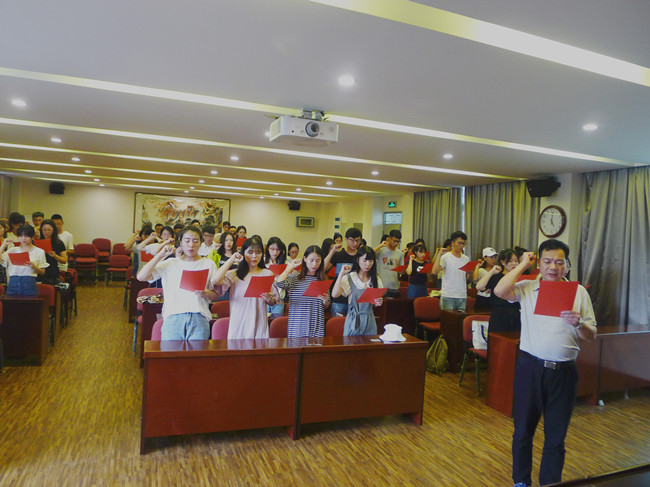 6月7日下午,艺术学院园林学院党委新发展党员宣誓仪式在综南附307会议室举行。面向鲜红的五星红旗,一句句坚定的誓词:“我志愿加入中国共产党,拥护党的纲领,遵守党的章程,履行党员义务,执行党的决定……”83名预备党员在学院党委书记陈为德的带领下,庄严宣誓。这是预备党员在成为一名正式党员前庄严的政治承诺,也是各位预备党员向党组织表明对党的事业的忠诚、自愿承担共产党员的政治责任。