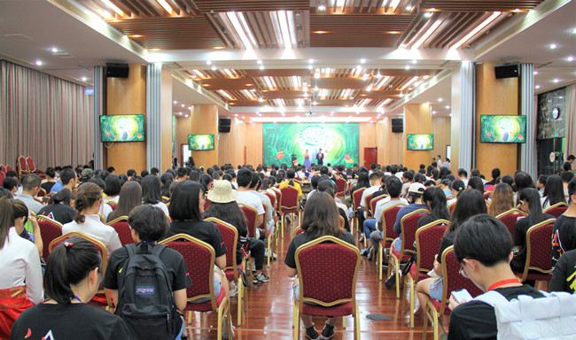 活动当天,常盛会议中心人声鼎沸。在现场工作人员的有序带领下,领导老师以及同学们相继入场就坐,一首由校艺术团筝乐队带来的《森林狂想曲》拉开本次大赛的序幕。随着主持人以及16位决赛选手的闪亮登场,现场气氛高涨热烈。此次比赛共分为三轮:风采展示、舍我其谁(PK赛)及巅峰对决挑战赛,并在其中穿插了知识竞答,以生动、有趣的形式进一步普及生态与环保知识,最终环节创新采用来自各个学院的大众评审投票和专业评审投票相结合的模式,使每一个同学都有强烈的参与感。比赛过程中,参赛选手们为观众展现了各自的风采,他们有的介绍家乡,有的知识科普,有的展示舞蹈,多才多艺的他们让现场的老师同学频频称赞。随后在激烈的一一对决中,选手们妙语连珠、绘声绘色,将现场观众们带入到一个个校内或校外的美景风光中,仿佛身临其境一般。美丽的风景、温婉的嗓音、精妙的解说都令人如痴如醉。