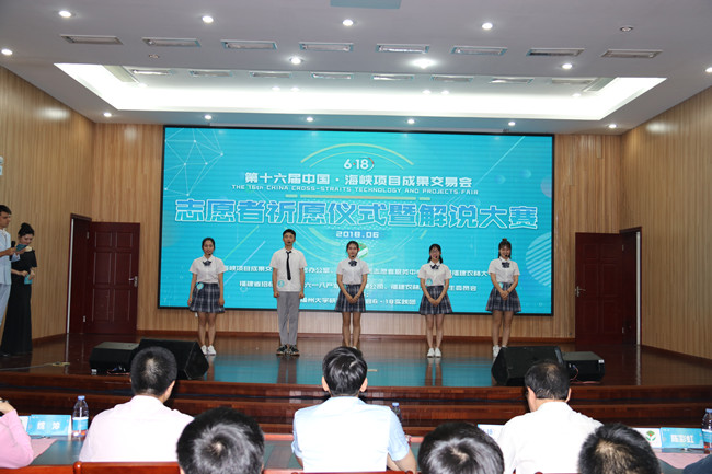 6月1日晚,第十六届中国·海峡项目成果交易会志愿者祈愿仪式暨解说大赛在我校常盛会议中心举行。此次活动由中国·海峡项目成果交易会组委会办公室、福建省青年志愿服务中心主办,邀请省发改委项目成果交易服务中心主任陈清福、团省委青年志愿服务中心主任张忠亮、省发改委直属机关团委房诚恺、福建省6·18产业发展有限公司副总经理陈彩虹以及福建省博物院优秀讲解员姚沁担任评委。