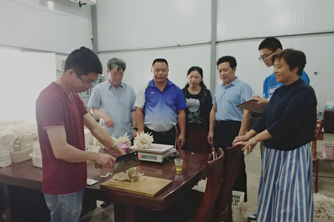6月2日,我校邀请福建省食用菌推广总站推广研究员羿红、将乐县农业局农技推广研究员肖顺刚、华中农业大学高级农艺师王卓仁3名专家,在湖北省武汉健业食用菌股份有限公司对我校食用菌产业服务团队选育的真姬菇新品种“闽真4号”进行现场测产验收。
