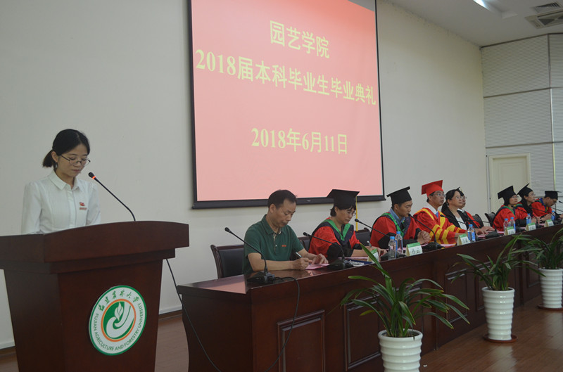 6月11日下午,园艺学院2018届本科毕业生毕业典礼在禧强楼学术报告举行。院党政领导、教授委员会主任、系主任、辅导员、教师代表、全体2018届本科毕业生和部分毕业生家长参加了此次毕业典礼,典礼由院党委副书记张文元主持。