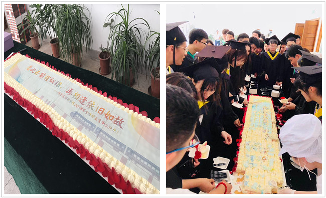 据悉,为庆祝2018届毕业生顺利毕业,学院还精心设计了艺术园林学院的专属“毕业证书”、“动车票”,定制2米长的巨型毕业蛋糕欢送毕业生,祝福毕业生未来工作、生活甜蜜永远。