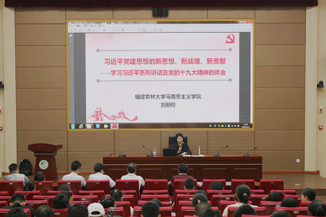 6月14日下午,旗山校区邀请校党委讲师团、马克思主义学院院长刘新玲到校区开展习近平新时代中国特色社会主义思想宣讲。刘新玲教授以“习近平党建思想的新战略、新思路、新贡献”为题向校区师生解读了习近平新时代中国特色社会主义思想。旗山校区管委会(筹)全体党员、校区两个学院师生参加了宣讲会。