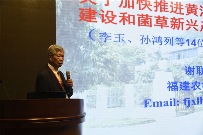谢联辉院士以《关于加快推进黄河菌草生态屏障建设和菌草新兴产业发展的建议》为题,介绍了菌草的应用领域,从脱贫致富、带动牧业、优质食物、再生能源、技术等方面说明了推广菌草的可行性,并就加快推进黄河菌草生态屏障建设和菌草新兴产业发展提出建议。