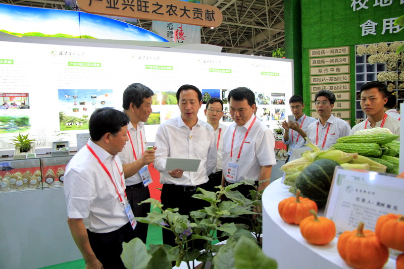 副省长杨贤金在教育厅厅长林和平陪同下,到我校设在生态环保产业馆的国家菌草工程技术研究中心展区视察。他对我校菌草工程技术在技术扶贫、生态环保中发挥的重要作用给予了充分肯定,并希望我校继续发挥科研优势,在国家精准扶贫工作中作出更大成效。