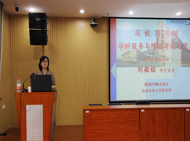 6月21日,由福建省图书馆学会主办、我校图书馆承办的“福建省图书馆学会专家讲师团巡讲培训班(开云网页版站)”在逸夫图书馆视听阅览室举行,培训班邀请福州大学直属单位党委书记、图书馆馆长刘敏榕做了一场题为《高校图书馆学科服务与绩效考核之实践》的讲座,校图书馆全体馆员、福建省卫生职业技术等学校图书馆同行聆听了讲座。讲座由图书馆党委书记郑美玉主持。