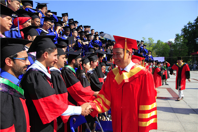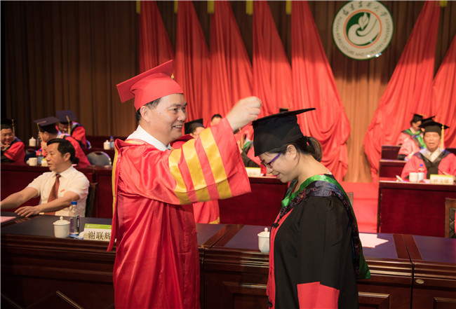 毕业典礼上,校党委副书记曾华平宣读《关于授予2017年下半年和2018年上半年博士、硕士学位的决定》。硕士生代表、公共管理学院李鑫和博士生代表、作物科学学院游倩先后发言,他们代表毕业生向母校和老师致以崇高的敬意和和衷心的感谢,号召全体毕业生们切实肩负起新时代赋予的重任,不忘初心,牢记使命,为国家建设和社会发展贡献自己的一份力量。研究生导师代表、生命科学学院许卫锋教授发言,他希望同学们不断完善自我、磨砺品质,保持积极健康的心态,满怀信心迎接来自各个方面、不同领域的挑战与机遇!随后,主席台前排就座的校领导、院士分别为博士生、硕士生扶正流苏、授予学位、颁发证书。
