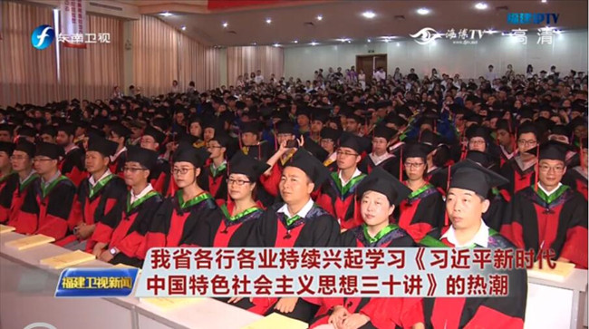 7月1日,东南卫视《福建卫视新闻》栏目播出《我省各行各业持续兴起学习<习近平新时代中国特色社会主义思想三十讲>的热潮》,报道我校向2018届毕业研究生赠送《习近平新时代中国特色社会主义思想三十讲》以及马克思主义学院召开毕业研究生学习《习近平新时代中国特色社会主义思想三十讲》交流会。