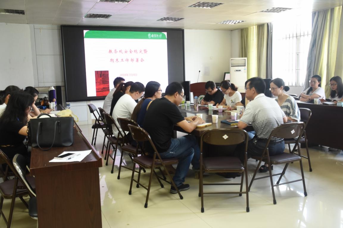 7月4日,教务处在明德楼312会议室召开校园安全稳定暨期末工作部署会,教务处全体工作人员参加会议。