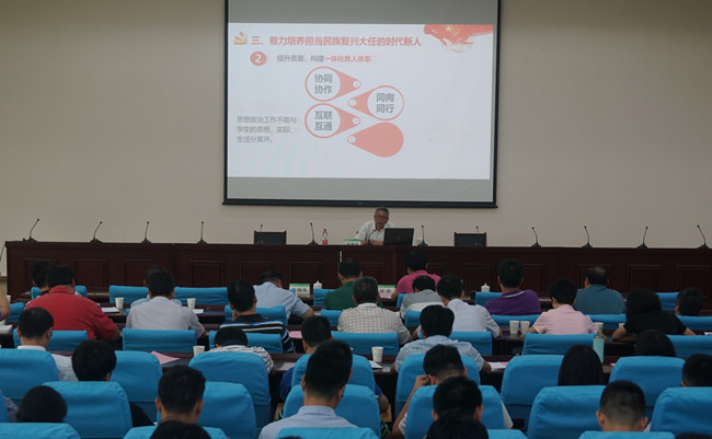 为贯彻落实校党委《在全校进一步兴起习近平新时代中国特色社会主义思想“大学习”热潮实施方案》的部署要求,进一步加强辅导员队伍建设,7月15日至7月16日,校学生工作系统在禧强楼学术报告厅举办了学习贯彻习近平新时代中国特色社会主义思想辅导员专题培训班。校党委副书记曾华平出席开班式并讲话,各学院党委副书记、全体辅导员和学生处政工干部共150多人参加培训。