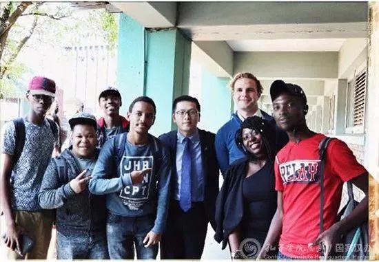 德班理工大学孔子学院中方院长吴林与学生合影