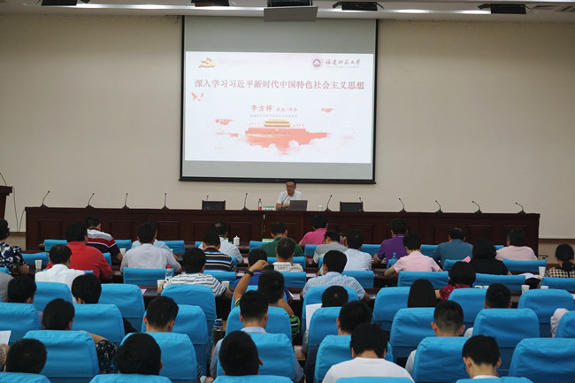 7月15日至7月16日,校学生工作系统在禧强楼学术报告厅举办了学习贯彻习近平新时代中国特色社会主义思想辅导员专题培训班。各学院党委副书记、全体辅导员和学生处政工干部共150多人参加培训。培训班邀请了省委教育工委思政处处长、福建省高校学习贯彻习近平新时代中国特色社会主义思想宣讲团秘书长陈晓风,福建师范大学马克思主义学院院长、福建省高校学习贯彻习近平新时代中国特色社会主义思想宣讲团成员李方祥两位专家作辅导报告,并精心挑选6名辅导员代表结合外派学习培训情况,做了经验交流分享。此次培训拉开了校学生工作系统“大学习”的序幕。