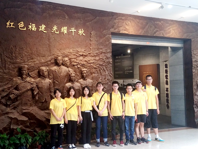 计算机与信息学院福州实践队队员在福建省革命历史纪念馆内的浮雕前合影