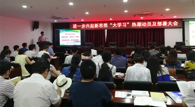 各学院、各单位党委在7月初纷纷召开会议,认真传达了《在学校进一步兴起习近平新时代中国特色社会主义思想“大学习”热潮实施方案》的精神,分发和集中学习了《习近平新时代中国特色社会主义思想三十讲》等自学辅导权威读本,制定了详细的“大学习”细化方案推进表。暑假期间,各学院、各单位重点抓好师生自学《党的十九大报告》原文和《习近平新时代中国特色社会主义思想三十讲》等权威辅导丛书,紧密结合师生特点和各自实际,分层次、有重点地推进党政领导干部、教职工和学生学习领会新思想。