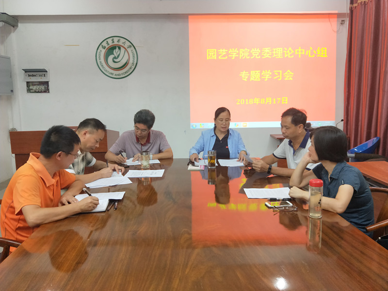 8月17日,园艺学院党委在学院一楼会议室召开理论中心组专题学习会议,院党委书记张华英、院长陈清西、副书记张文元、副院长曾黎辉,以及学院工会主席、办公室主任、团委书记参会。