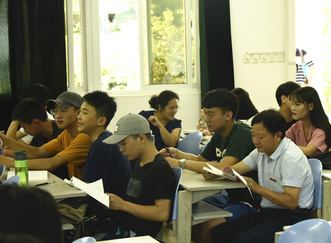 在金山校区,兰思仁校长先后走进田家炳楼105和208教室听取了马克思主义学院刘淑兰老师讲授的《毛泽东思想和中国特色社会主义理论体系概论》和邹丽芬老师讲授的《马克思主义基本原理概论》课程,并认真做了听课记录。