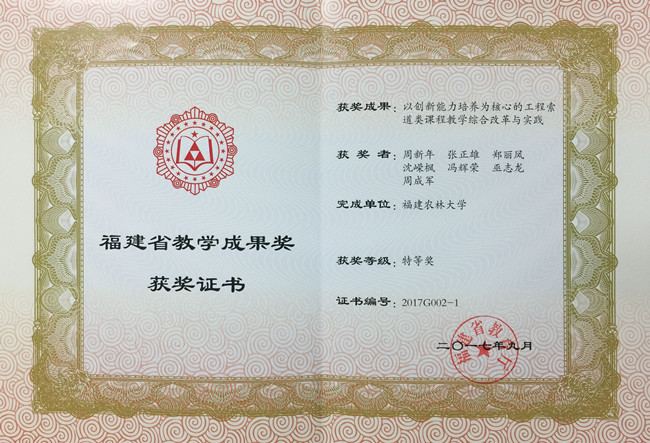 由我校周新年教授主持的“以创新能力培养为核心的工程索道类课程教学综合改革与实践”和“《科学研究方法与学术论文写作》教材立体化建设”分别获福建省第八届与第九届高等教育教学成果特等奖与二等奖。其中,“《科学研究方法与学术论文写作》教材立体化建设”系第九届全省高校唯一获奖的教材教学成果奖。