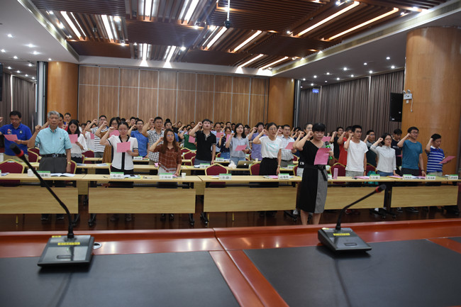 8月31日上午,2018年新教师研习营开班仪式在常盛会议中心举行。新入职教师在雄浑有力的校歌中步入会场,认真观看我校宣传片,深切感受了我校深厚的文化底蕴。为强化新入职教师忠诚党的教育事业,努力当好人民教师的使命感和责任感,在开班仪式上还进行了庄严的师德师风宣誓。