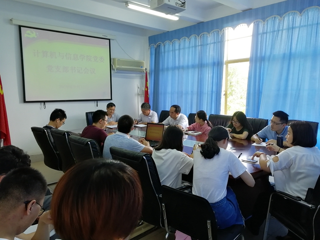 9月12日上午,计算机与信息学院党委在学院会议室召开党建与思政工作会议。会议由学院党委书记陈宜大主持,学院党委副书记吴鹏程和各党支部书记参加了会议。