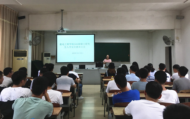 为创建平安校园,维护学校学生的人身、财产安全,提高广大新生的安全防范意识与自我保护意识,按照学校、学院迎新工作部署,9月15日下午,机电工程学院于机电楼208室召开2018级硕士研究生入学安全教育大会,会议由学院党委秘书兼研究生辅导员连惠芗主持,2018级全体硕士研究生共51人参加了教育大会。