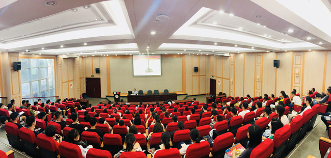 9月17日下午,海外学院党委书记罗志雄在常盛报告厅为2018级中加项目新生作了题为 “认真学习习近平新时代中国特色社会主义思想,努力锻造为中国共产党治国理政服务的国际化人才”的新思想宣讲报告,全体新生共160人聆听报告。报告会由学院党委副书记李晓辉主持。