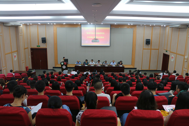 9月16日下午,管理学院于李常盛学术报告厅召开了2018级研究生开学典礼暨师生见面会,对顺利升入学院的114名研究生表示欢迎。学院党委书记谢志鸣、院长陈秋华、副院长陈贵松、副院长石德金、院党委委员黄怡、博士生导师黄秀娟教授、院学术委员会副主任汤新华教授、各系教师代表及2018级全体研究生出席典礼。