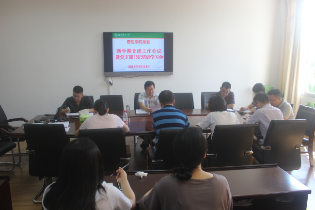 9月14日,管理学院召开新学期党建工作会议暨党支部书记培训会,全体党支部书记参加了会议,会议由院党委书记谢志鸣主持。