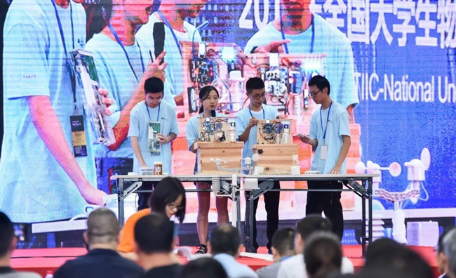 比赛现场我校学生展示获奖作品“智慧养蜂人”