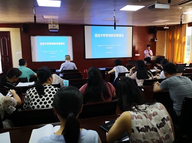 9月20日上午,继续教育学院党委邀请校党委讲师团新思想专题宣讲团郑兴明老师在学院五楼教室,为学院全体教职工进行习近平新时代中国特色社会主义思想宣讲,主题是:坚定不移贯彻新发展理念。