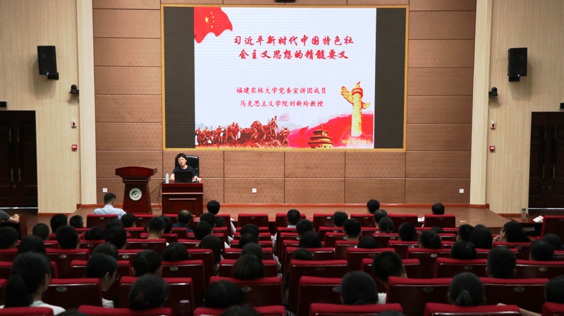 按照校党委下发的《进一步开展习近平新时代中国特色社会主义思想“大宣讲”工作方案》的文件精神和要求,9月20日下午,材料工程学院党委在旗山校区小报告厅召开习近平新时代中国特色社会主义思想“大宣讲”报告会。会议邀请到校党委讲师团新思想专题宣讲团成员、马克思主义学院院长刘新玲教授作题为“习近平新时代中国特色社会主义思想的精髓要义”的专题辅导报告。报告会由旗山校区管委会常务副主任、材料工程学院党委书记陈建辉主持,旗山校区管委会(筹)、材料工程学院以及交通与土木工程学院的党员师生代表共计240余人聆听了报告。