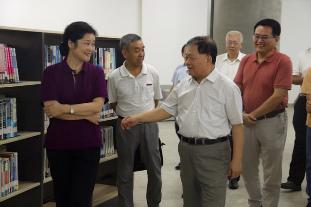 曹德淦、叶辉玲在学院领导陪同下视察图书馆