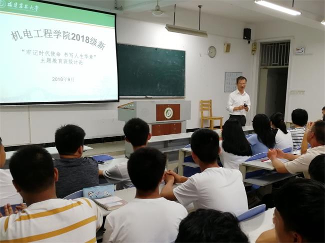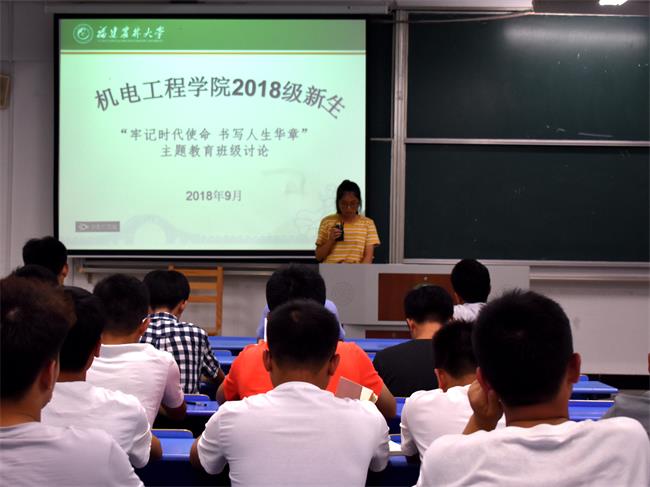 9月20日晚,机电工程学院分班级开展2018级本科新生“牢记时代使命 书写人生华章”主题教育班级讨论活动。学院党政领导、各班级班主任、新生辅导员及424名新生参加此次活动。