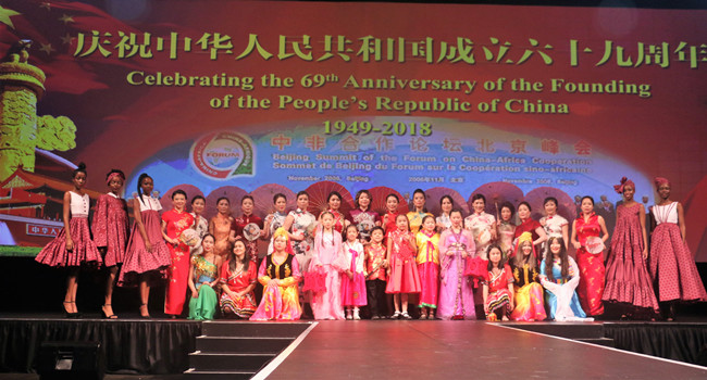 一曲歌毕,由德班孔院教学点树德书院的学生带来的舞蹈表演获得阵阵掌声。随后,驻德班总领馆联袂夸纳省华人代表与当地模特组成模特队,共同为观众带来了精彩的时装秀表演,充分展示了中国传统与民族服饰的特点与美丽:优雅的旗袍展示了中国女性的风姿绰约与东方神韵,质朴的藏族服饰透露着高原人的真诚热情,鲜亮的维吾尔族服饰展现了浓郁的大自然风格,艳丽的傣族服饰更是富于热带、亚热带旖旎风光……目接不暇的时装秀配上悦耳的音乐,现场掌声雷动,将招待会的气氛推上高潮。