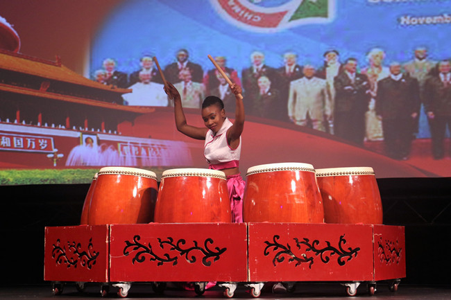 在演出环节,由当地黑人表演团体——天龙队带来的一段开场中国鼓表演《鼓味恒韵》震撼全场。随着肢体的舞动融合,敲击出鼓声的振奋和跳动的韵律。生命的万象风华皆用鼓声特殊的撼动力量为媒介,谱写了浩瀚浑厚的乐章。