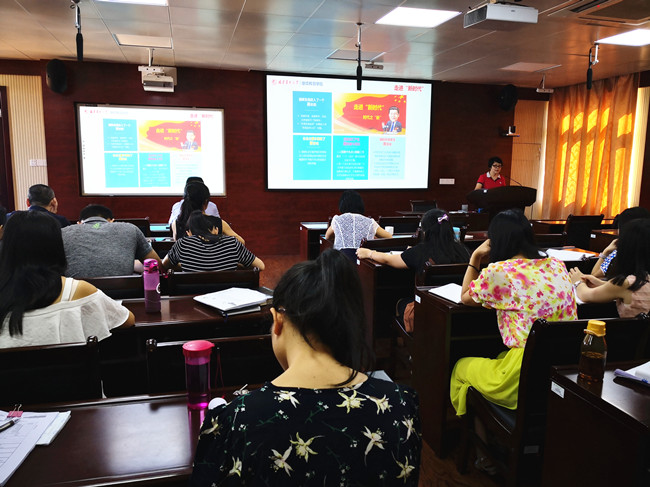 9月27日上午,继续教育学院院长李秀慧在学院五楼教室,为学院全体教职工进行习近平新时代中国特色社会主义思想宣讲,主题是:用习近平新时代中国特色社会主义思想指导办好继续教育。