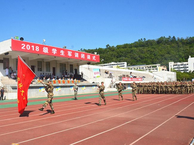 9月28日上午,随着庄严国歌声在北区田径场响起,2018级新生军训闭训式隆重举行。校党委副书记曾华平,中国人民解放军31612部队少校、军训团负责人肖承成出席了闭训式并讲话,校军训团成员单位负责人、学院党委副书记、承训部队官兵和参训新生及辅导员共6000多人参加。