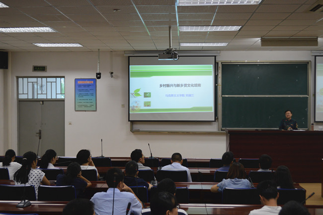 刘淑兰教授从乡村振兴战略提出的时代背景、乡村振兴战略与新乡贤文化培育的总体要求、乡村振兴战略与新乡贤文化培育重要的时代价值和乡村振兴战略与新乡贤文化培育的主要途径等四个方面为教师党员作了详细的讲解。