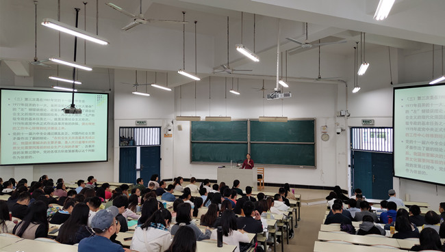 10月11日,食品科学学院党委在创新楼203教室举办习近平新时代中国特色社会主义思想“大宣讲”报告会。报告会邀请校党委讲师团新思想专题宣讲团成员、校学术委员会委员、马克思主义学院叶飞霞教授,作题为“我国社会主要矛盾变化的依据及时代价值”的专题报告。