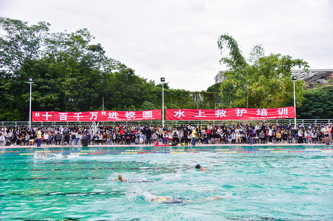 同学们参与水上救护培训活动