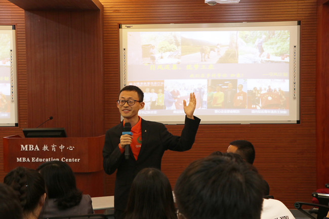 10月17日,我校首个获中国“互联网+”大学生创新创业大赛金奖项目、“引凤计划”负责人经济学院2017届农村区域发展专业毕业生裴锦泽回到母校,在经管楼114进行成果分享。校外导师杨小浪,校新农村发展研究院副院长、项目指导老师朱朝枝、校网络文化科科长刘聃受邀出席会议,学院党委副书记陈玲凤、项目负责人2017届农村区域发展专业毕业生裴锦泽、项目团队成员凌誉、田迎香同学参加会议,会议由学院团委书记主持,学院各专业学生代表80余人参加。