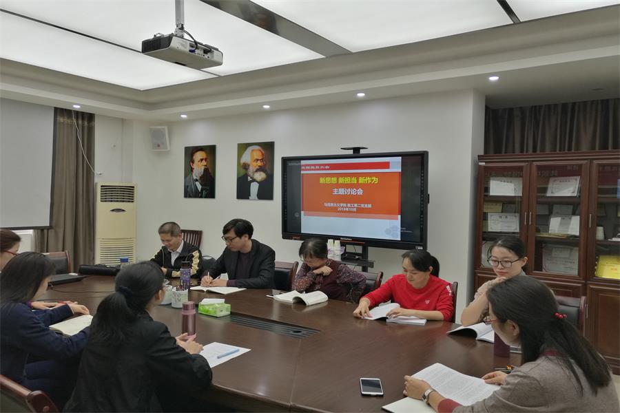 10月18日,马克思主义学院教工第一党支部在明德楼613会议室、教工第二党支部在明德楼601会议室分别召开了关于“新思想、新担当、新作为”的专题学习讨论大会。学院教工第一党支部书记黄秀玲、第二党支部书记林贤明分别主持支部大会,教职工全体党员分别参与了此次的专题学习讨论大会。